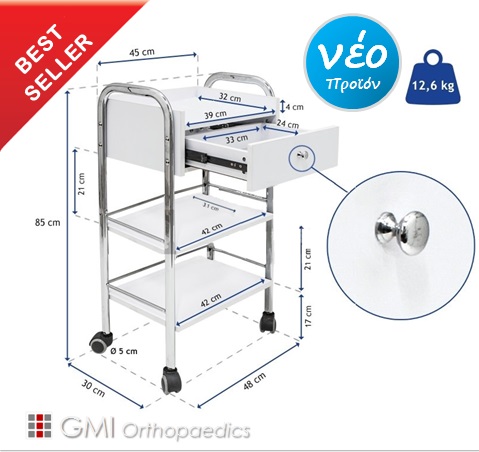 ΤΡΟΧΗΛΑΤΟ ΤΡΑΠΕΖΑΚΙ ΙΑΤΡΕΙΟΥ ΜΕ 3 ΡΑΦΙΑ & 1 ΣΥΡΤΑΡΙ